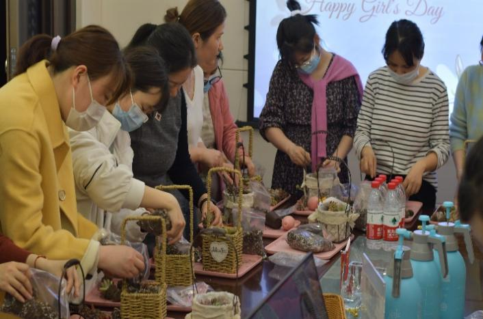 為順利舉辦此次活動,人力行政部定制了活動橫幅并邀請了專業(yè)的多肉種植老師為大家講解示范。3月8日當(dāng)天下午,人力行政部精心布置好會場與多肉種植老師一起等待全體女同胞們進(jìn)入會場。