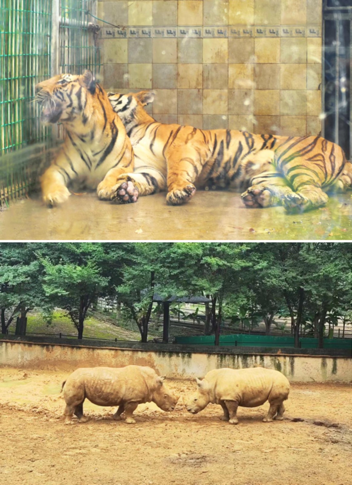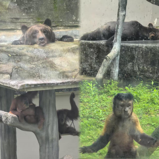 在老虎園區(qū)里,威風(fēng)凜凜的白虎和東北虎隔著籠子互相打量,時(shí)而發(fā)出低沉的吼聲交流,而另一邊的兩頭東北虎則親密地緊挨在一起打盹,斑駁的樹影灑在它們金黃的皮毛上。不遠(yuǎn)處的犀牛區(qū),兩只體型龐大的白犀牛正在上演領(lǐng)地之爭,它們用粗壯的角互相頂撞,揚(yáng)起陣陣塵土,發(fā)出沉重的鼻息聲;非洲大羚羊區(qū)最是熱鬧,高大的羚羊們溫順地低下頭,伸著脖子吃著小朋友親手投喂的食物,長長的睫毛在陽光下忽閃忽閃。樹冠間,靈巧的長臂猿扒著樹干蕩著秋千,偶爾還會(huì)停下來好奇地觀察下方拍照的游客。園區(qū)主干道上,飼養(yǎng)員牽著一匹可愛的袖珍小馬漫步,珍珠馬的脖子上系著的鈴鐺隨著步伐發(fā)出清脆的聲響。整個(gè)園區(qū)洋溢著人與動(dòng)物和諧相處的氛圍。